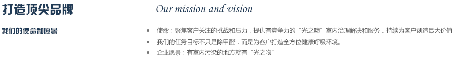 2012年公司斥巨資從德國專業(yè)空氣研發(fā)實(shí)驗(yàn)室引進(jìn)銳鈦型納米二氧化鈦研發(fā)成果,同時(shí)與國內(nèi)知名高校進(jìn)行合作,成立“光之吻”品牌,致力于為人類創(chuàng)作純凈,健康的呼吸環(huán)境,成為你身邊的健康衛(wèi)士,實(shí)現(xiàn)365天健康呼吸的夢(mèng)想,目前是同類產(chǎn)品中最有競爭力的品牌之一。